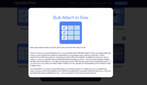 - Bulk Attach to Row lets you drop them all into your sheet and into individual rows cutting down the time it takes your team to manually perform the task.
