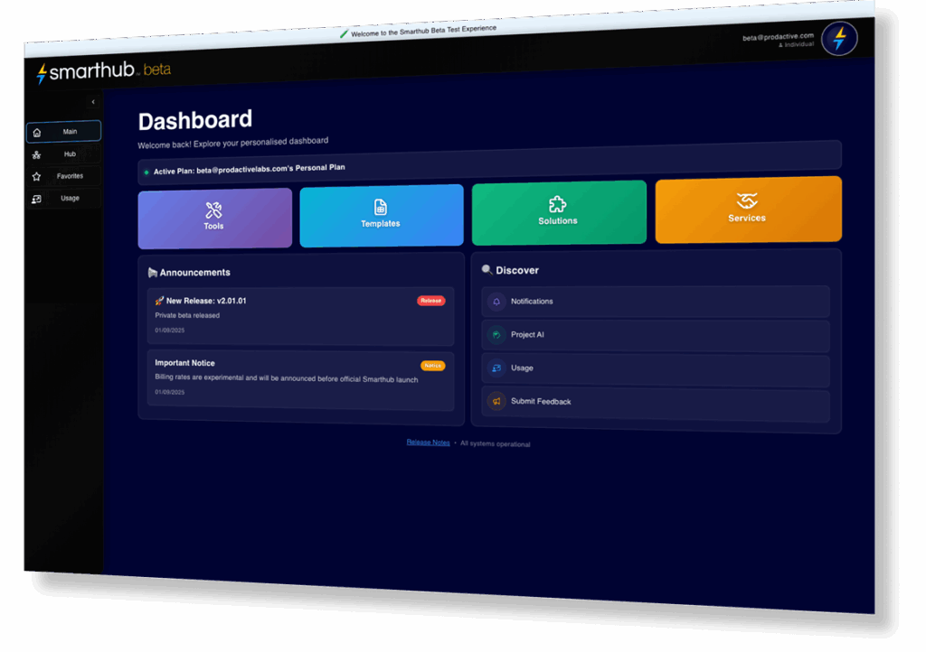 We’re releasing access to Smarthub™ in phases, initially prioritising power users and Prodactive clients so that we can gather valuable feedback before making it available more widely.